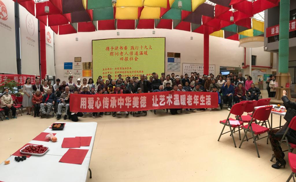 老吾老以及人之老。继2017年11月设计学院学生去该中心开展慰问活动得知这里缺乏书籍汇报学院团委后,学院领导高度重视,号召全院老师和同学们捐书,并决定组织策划一场有特殊意义的活动,让老人们高兴的同时将同学们所学专业如扎染、剪纸、手工艺制作、书法、国画等运用到实践中。此次活动得到共青团乌当区委的大力支持,得到艺术学院、教科院的大力协助,得到黔龙驾校的倾情赞助。
