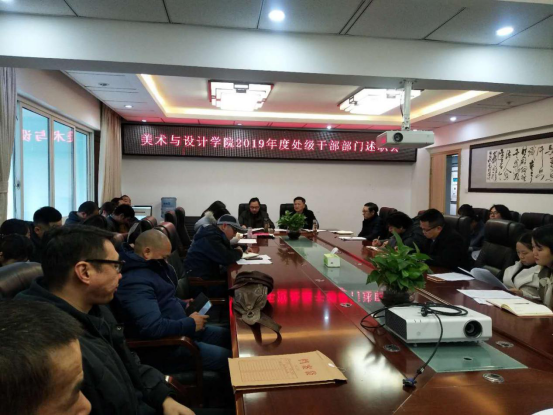 首先,在处级干部部门述职会上,聂森作动员讲话并传达了述职要求,学院领导班子成员结合自身分管工作从德、能、勤、绩、廉五个方面进行了述职。最后,聂森谈到2019年美术与设计学院在校党委、行政的坚强领导下、在全体教职工生的共同努力下圆满完成了各项工作、取得了不少成绩,2020年全体要抢抓机遇实现学院跨越式发展。随后,学院行政人员也进行了述职。