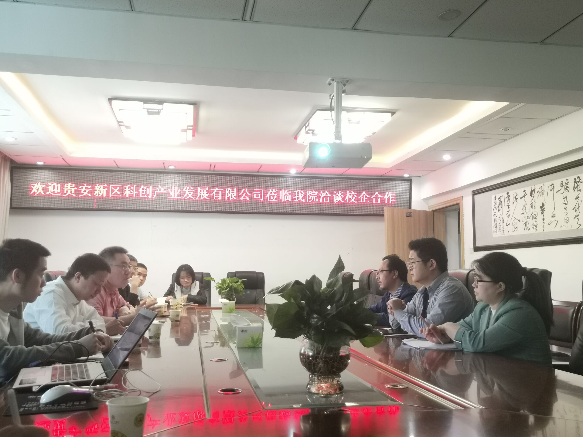 贵安新区科创产业发展有限公司根据企业发展需求并结合我院办学特色,围绕创新校企合作模式、共建实习基地、共同搭建科研平台等方面进行了深入的研讨。企业希望可以运用学校科研团队的人才优势、理论优势等为科研平台的搭建提供全方位的智力支持、设备支撑。同时,企业也可以运用自身的就业岗位、新项目的落地与推广优势来为学院提供科学研究、人才培养的实践环境,实现校企合作。
