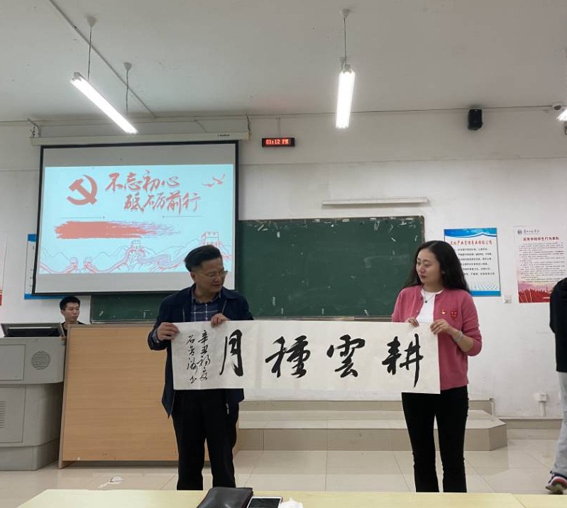 活动开始,播放了一段关于赵书记这两年来在美设学院工作回顾的视频。回忆过去,她为了团委学生会的工作日夜操劳,培养了一届优秀的学生干部,让大家一同见证了团委学生会一步步的成长。接下来,石含洲书记代表学院领导班子赠予赵玉书记一幅亲笔题写的书法作品“耕雲种月”,感谢她这两年为学院的付出。聂森院长出差在外,录制视频远程送来祝愿,表达了对她今后工作的支持。活动中,学院同学为赵书记颁发了“绝美长公主”荣誉奖牌,并送上鲜花与蛋糕,感谢她这两年来对同学们的悉心教导。在同学们的心目中,她勤恳智慧,是同学们的良师益友。活动最后,赵玉书记上台表达了自己对学院深挚的爱和不舍之情,并表示无论身处哪个岗位,都不会忘记自己美设人的情怀。