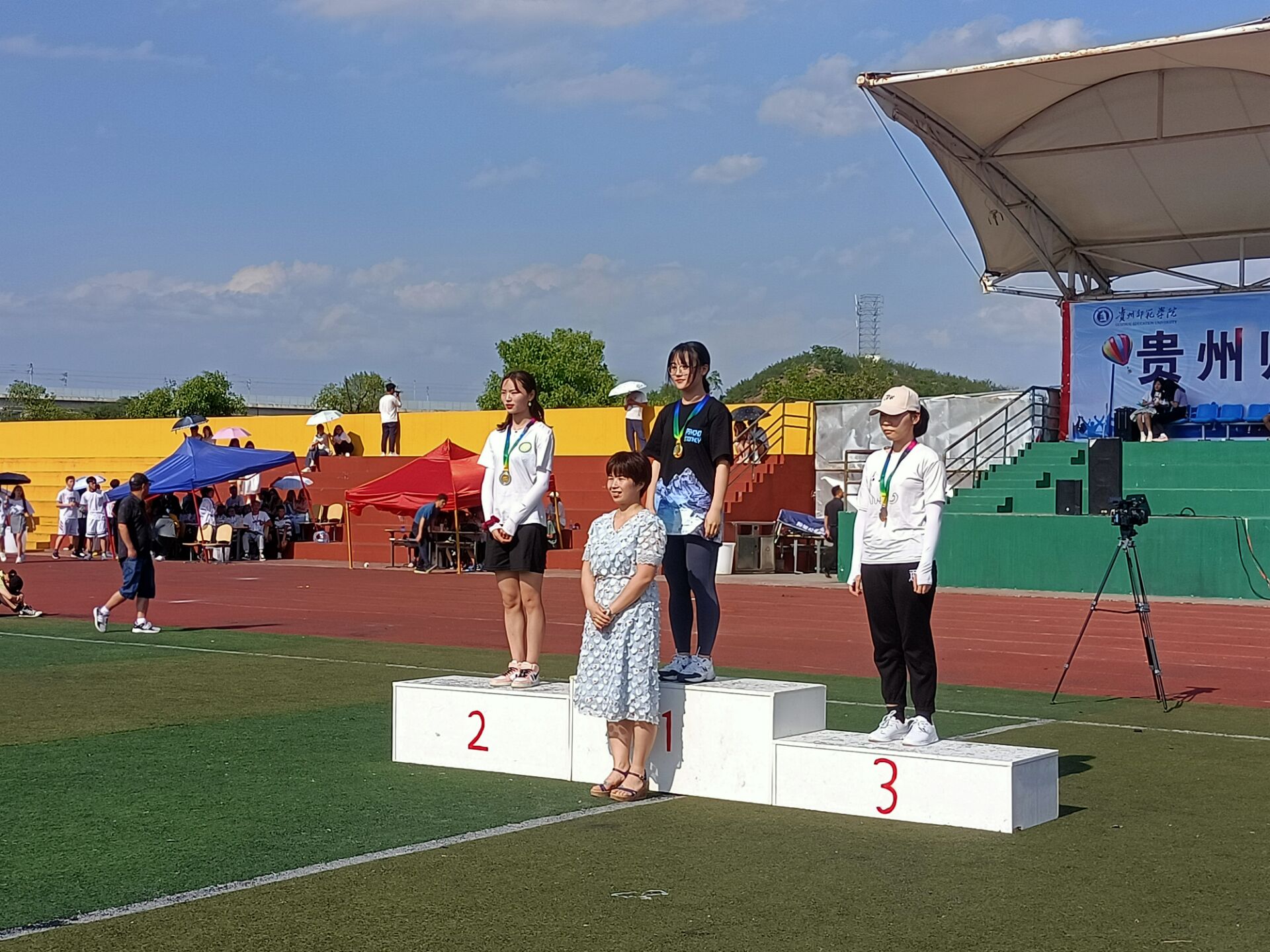 本次运动会分为趣味项目和田径赛。田径场上,运动员们矫健的步伐中蕴藏着力量,坚定的目光中充满了自信,看台上,既有同学们胜利时的鼓掌欢呼也有失败时的鼓励安慰。运动会的举行不仅提高了同学们的身体素质,培养了同学之间的协作能力,更增强了学院的集体荣誉感。运动员们井然有序的参与比赛,背后离不开学院后勤人员的辛勤付出,尽管骄阳如火,他们仍坚守在自己的岗位上,只为保障美设运动健儿的平安,为了比赛能够顺利进行。经过不懈努力,我院在趣味项目点球大战中荣获第一名,学生组在男子三级跳远、跳远、1500米、4*100米中分别荣获第一、第三、第三、第八名,女子100米、200米、3000米、4*100米分别荣获第八、第一、第六、第五名,学院荣获团体总分第七名。