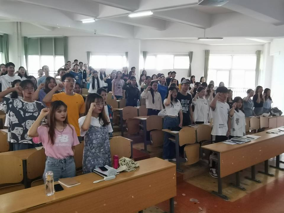 开班仪式开始,由团委副书记卿旭源带领同学们齐唱了中国共青团团歌,歌声激情昂扬,拉开了第二十三期团课培训的序幕,在卿旭源的带领下,由新发展团员姚一帆同学作为代表面向团旗宣读了入团誓词。紧接着由团学负责老师黄婧为团员们上了一堂“铭记历史,继往开来”的团课,带着同学们重温了共青团的基本知识及光辉的发展历史,号召同学们牢记入团初心,增强团员的责任感、荣誉感和使命感,严格执行团的章程和组织原则,为青年学子带好头,争当优秀青年模范。