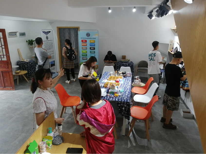 随后,实践团队又来到了贵州嗓嘎非遗体验馆,就如何更好的呈现产品,如何吸引客流量,如何提升游客购买欲,如何让传统手工艺品紧跟时代潮流等方面进行了头脑风暴,集思广益,为店家室内装修设计提出意见和拟定修改方案。