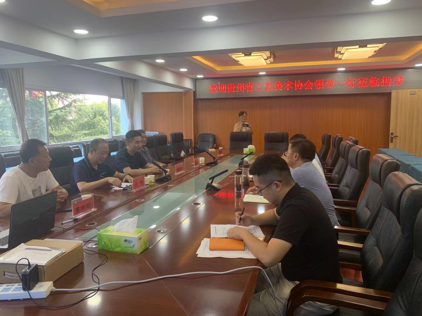 首先,贵州省工艺美术研究所所长谭春生介绍了研究所的情况,以及正在开展的对贵州传统工艺美术资源进行搜集并编撰等工作进行了介绍,这些工作对了解贵州民间工艺资源,建设家乡,振兴乡村,对助推高校专业特色建设,对特色学科发展都能很好地提供有益的帮助。贵州省工艺美术协会会长岳振从工艺美术协会的角度,与高校开展“双师型”建设,非遗传承项目合作培训、师资建设等方面进行了交流。