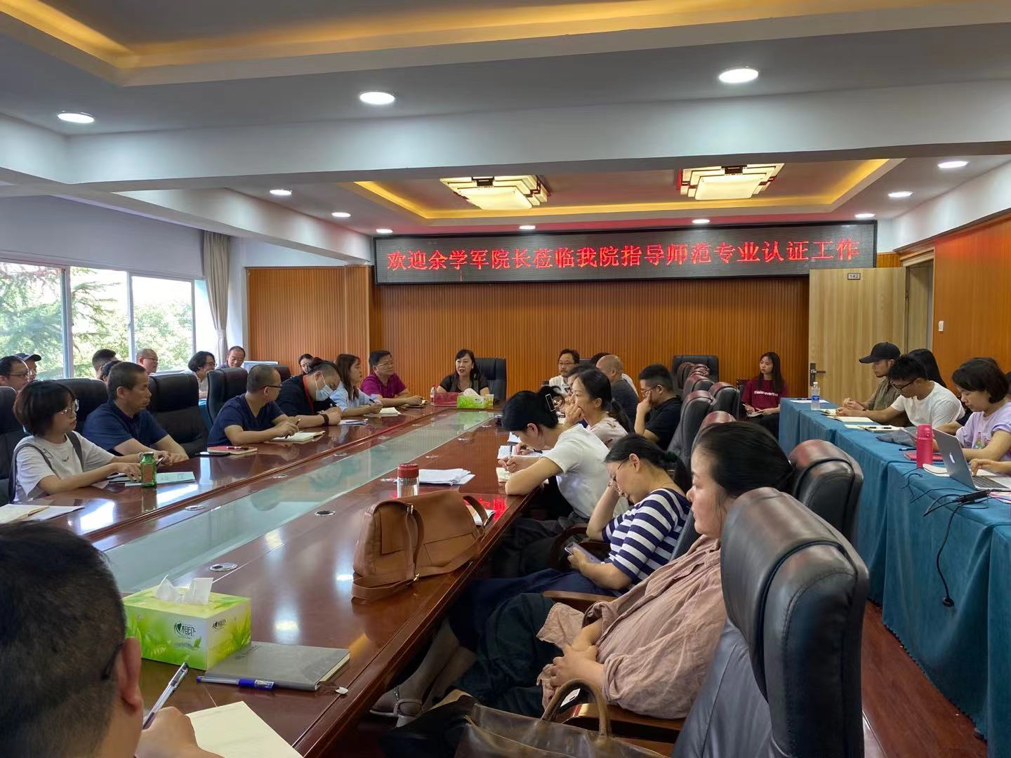 在学校领导的大力支持和指导下,在全院教职工的共同努力下,通过前期的认证申请、专家开展自评材料线上审阅和线下评审,美术学专业师范认证被确定为第一批专家进校考查专业。为了更加充分的准备迎检,9月6日下午,我院邀请外国语学院院长余学军分享交流英语专业师范认证的经验,指导我院美术学专业师范认证工作。指导会由院长聂森主持,党委书记石含洲、副院长路统宽、各系主任、专业带头人,以及全体专任教师参加指导讲座。