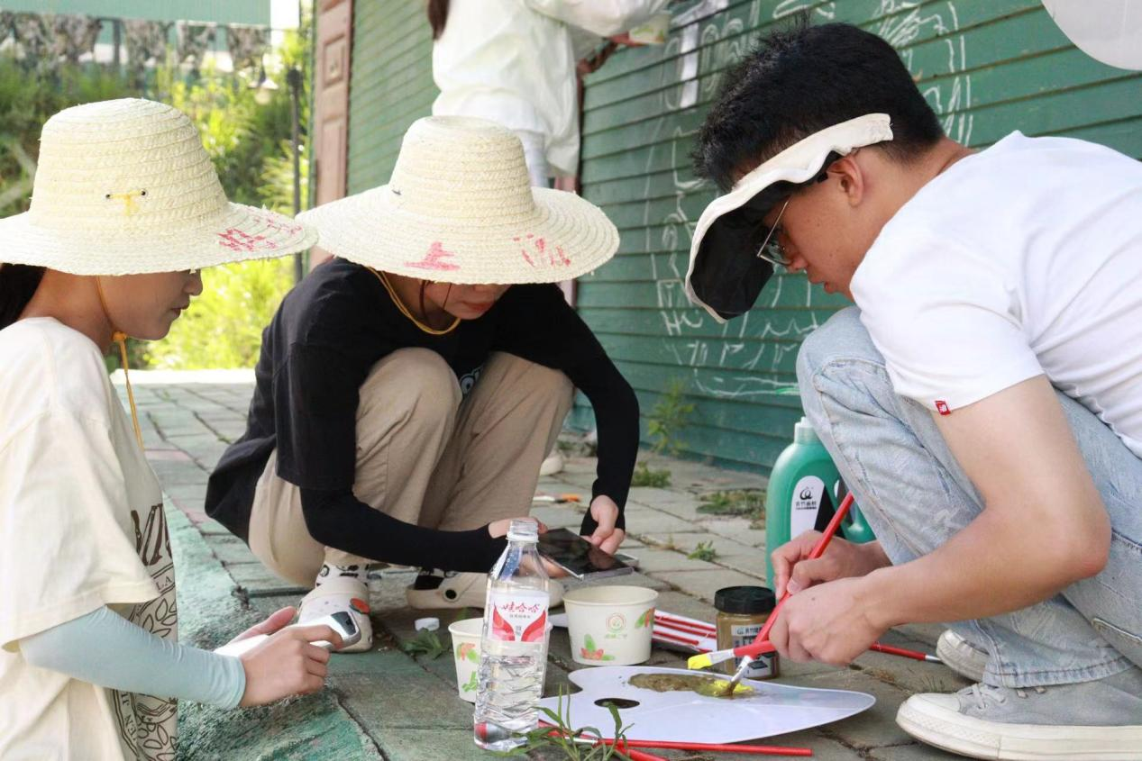为弘扬红色文化,唱响青春年华。7月11日下午,美术与设计学院“未来绘”志愿服务队在学院党委副书记郝进欣、指导教师朱昌来和带队教师黄婧的带领下,来到乌当区羊昌花画小镇的民兵训练基地开展2022年大学生暑期三下乡社会实践活动。
