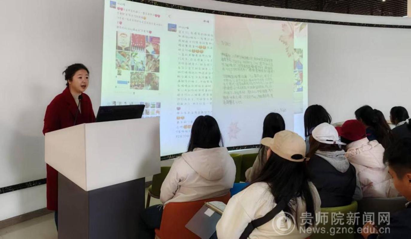 为进一步强化师范生职业道德修养,筑牢教育初心,提升育人能力,近日,贵州师范学院美术与设计学院在教学实践周期间,特邀贵阳乐湾国际实验小学招办主任兼国际部副主任、拥有十五年基础教育教学经验的知名教育专家杨敏老师,在学院艺术工坊举办了一场题为“师德情怀、师德师风、班主任工作”的专题讲座。教师代表及美术系全体师范生共同聆听了此次讲座。