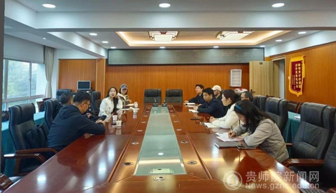 2026年3月31日,贵州绣娘文化有限公司董事长刘海峰、设计总监孙立伟一行五人莅临贵州师范学院美术与设计学院,就非遗文创开发、研学合作等方面开展深入交流与探讨。学院院长聂森、党委副书记邱琴、副院长杨辉及教师代表参会。