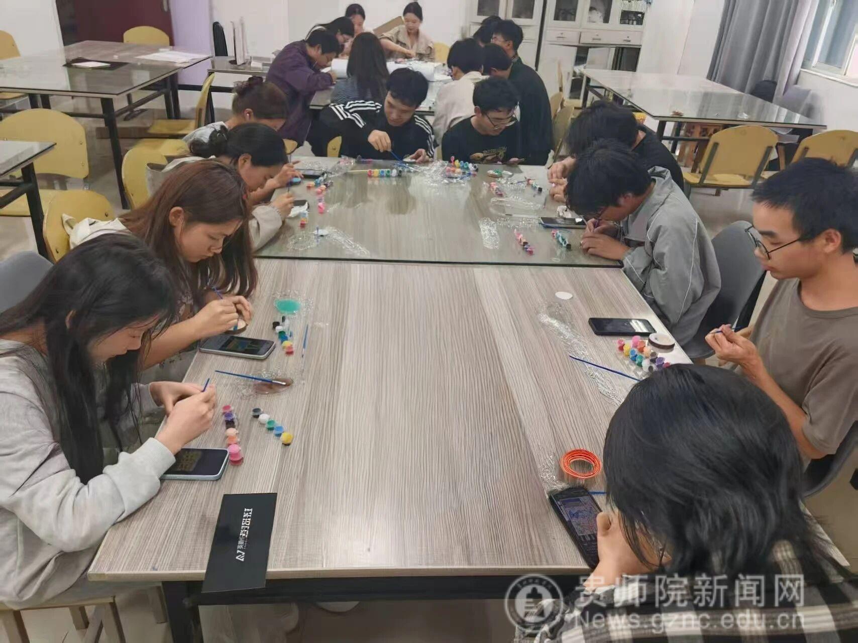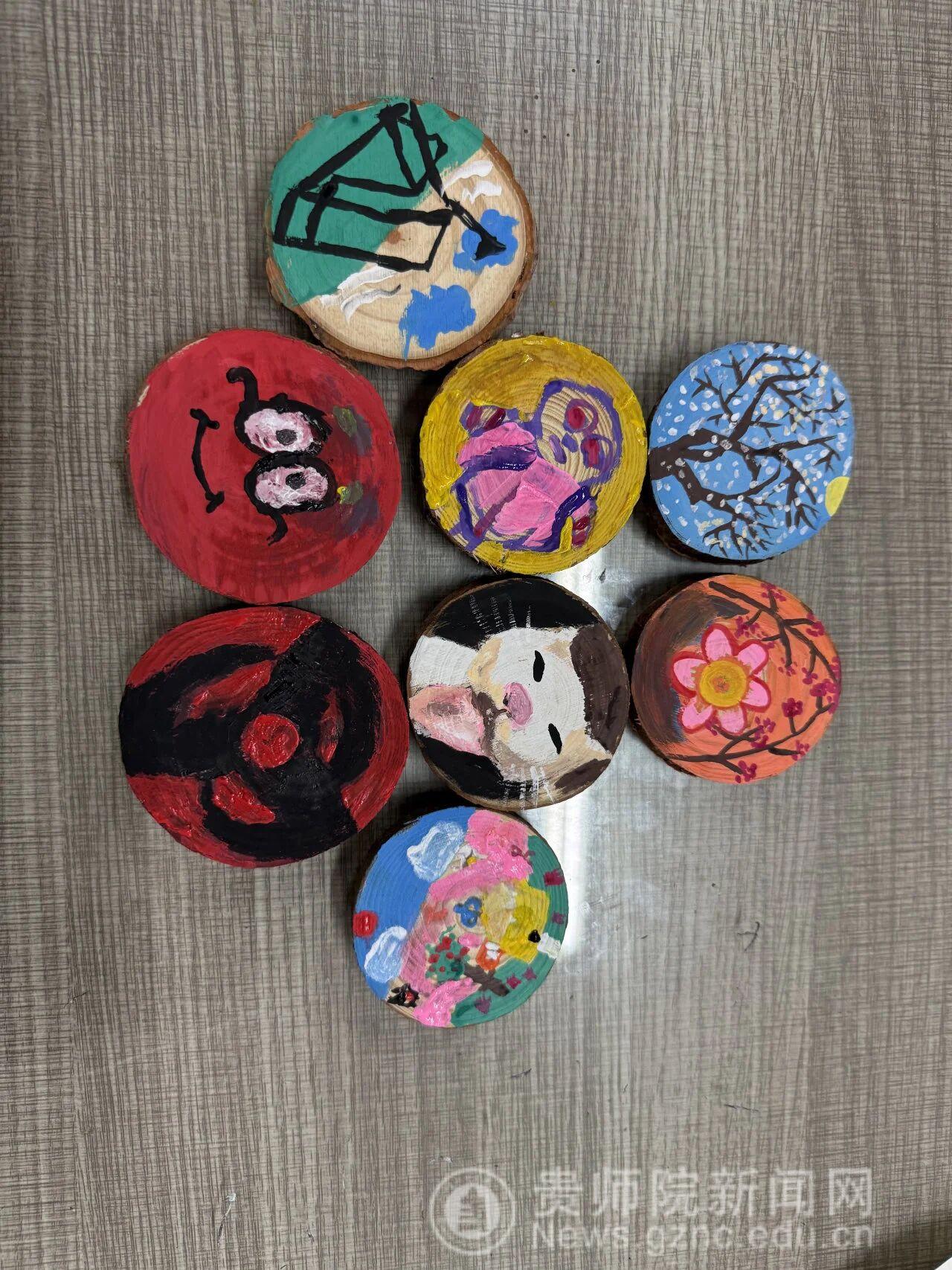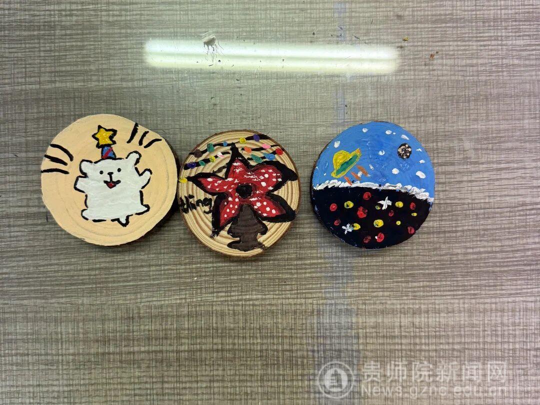 贵州师范学院美术协会(简称“美协”)紧扣“以美育人、以创育才”的人才培养理念,在推进校园文化建设之际,开展了“原木年轮·木片冰箱贴DIY”美育实践活动。本次活动以低门槛的木片DIY为载体,将自然质感与创意创作深度结合,吸引了来自物理与电子科学学院、马克思主义学院、外国语学院、美术与设计学院、历史与档案学院、化学与材料学院、商学院等多个学院的30名学子参与其中。