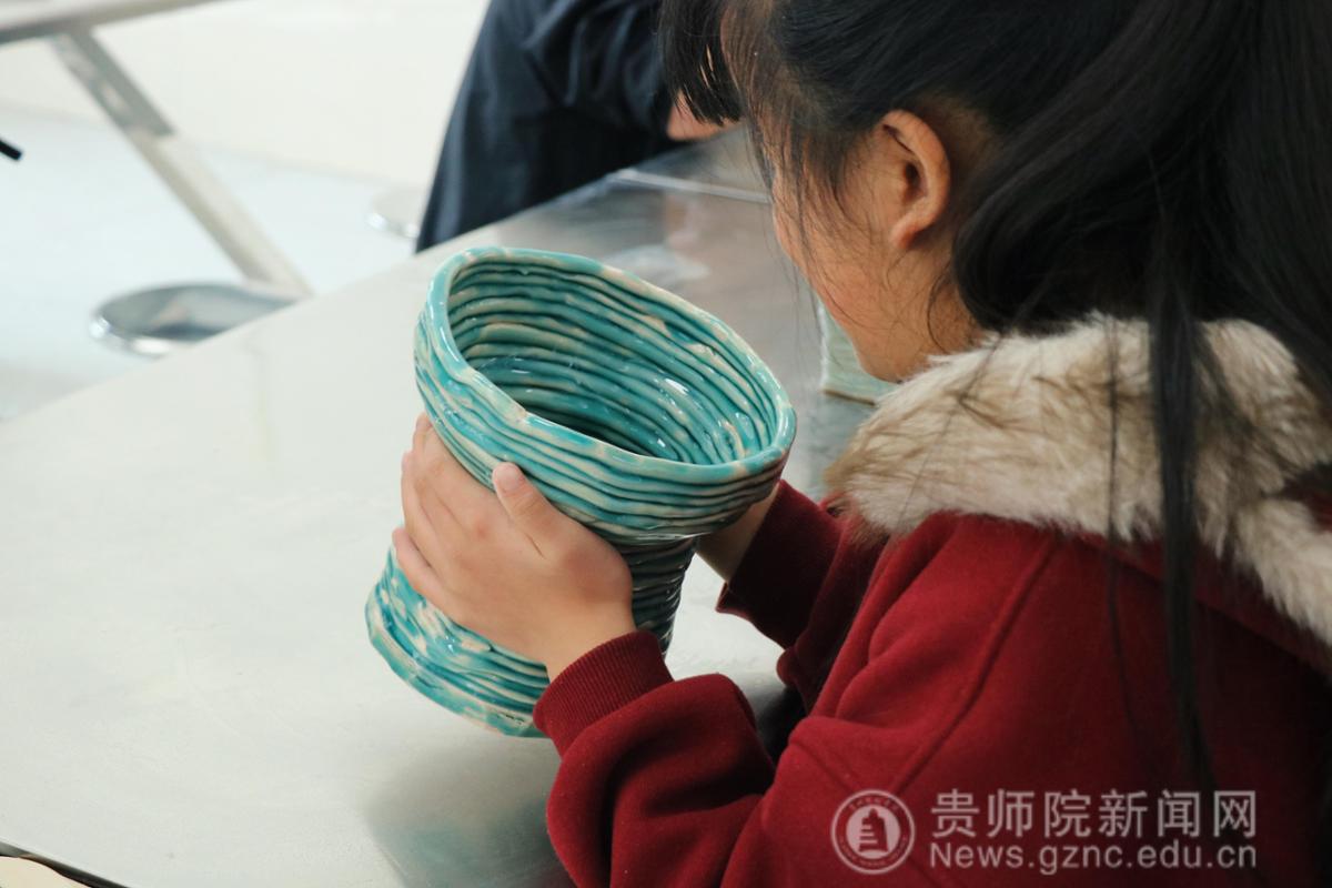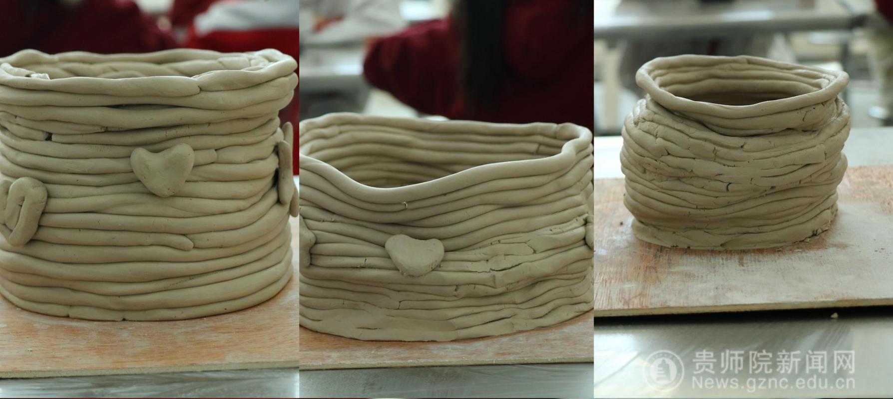 课堂上,志愿者们引导孩子们触摸陶土、倾听讲解、动手操作。通过搓制、盘筑、收口等核心技法的逐步教学,孩子们从基础塑形开始,最终独立完成了容器等立体作品。活动着重培养触觉感知、空间想象与动手能力,鼓励自主创作并为作品命名分享灵感。在指尖的揉捏与层叠盘筑中,孩子们沉浸式体验牙舟陶非遗魅力,不仅掌握了陶艺技能,更在实践里收获了成长的自信与由衷的快乐。