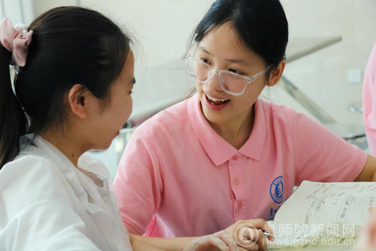 志愿者与学生交流
