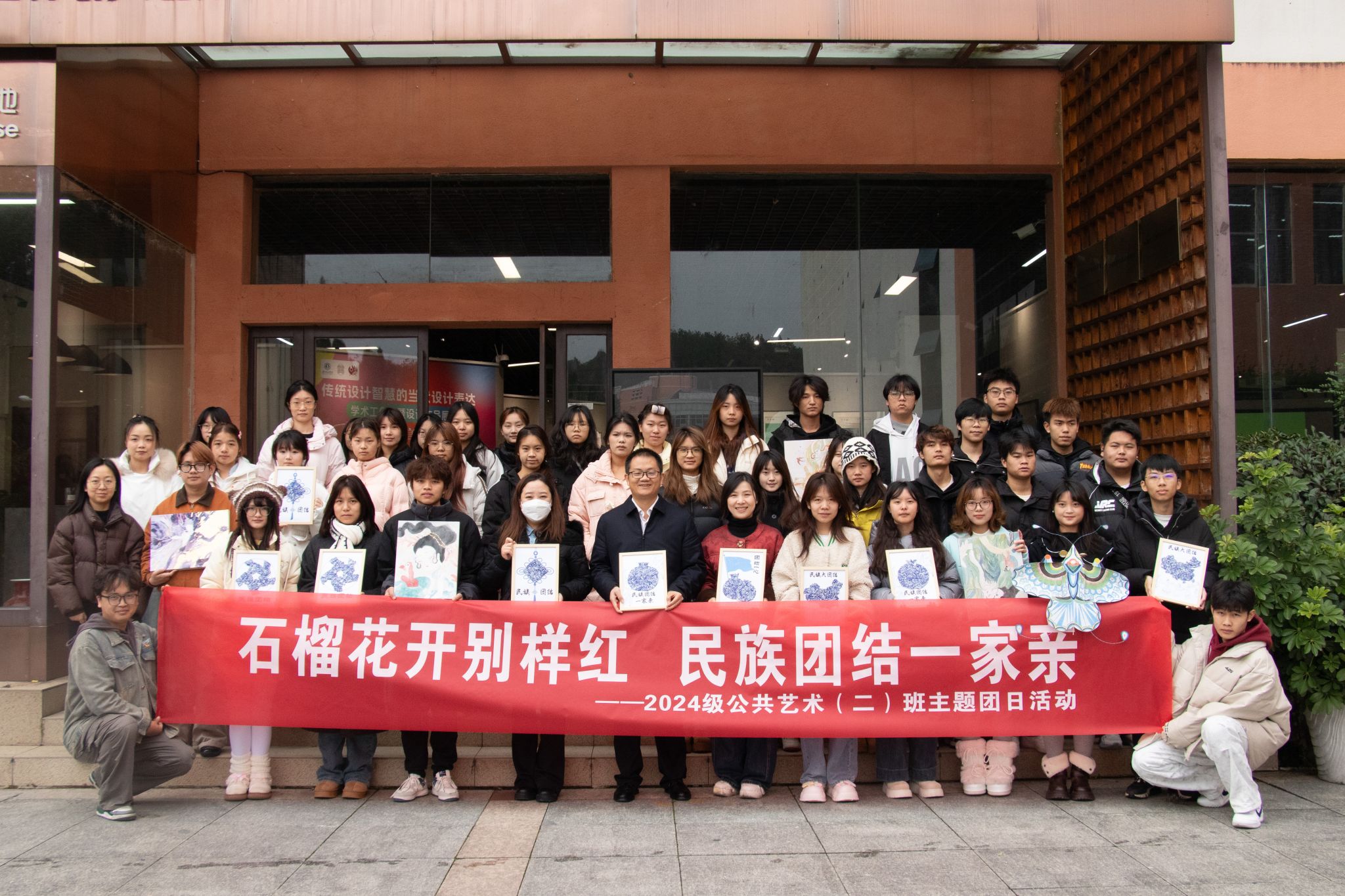 为深入学习贯彻习近平总书记关于加强和改进民族工作的重要思想,12月3日,贵州师范学院美术与设计学院于艺术实践工坊精心筹备并成功举办了一场极具教育意义与专业特色的“民族大团结 共画同心圆”主题团日活动。校党委常委、副校长罗光杰,校党委委员、团委书记周煜,美术与设计学院党委书记郝进欣,院党委副书记邱琴,院团委副书记黄婧,辅导员欧俐岑以及2024级公共艺术二班全体同学齐聚一堂,共同参与此次活动。活动在优美音乐中开场。团支书张乐介绍团支部建设情况与活动主题,学习委员韩立辉带领大家学习中...