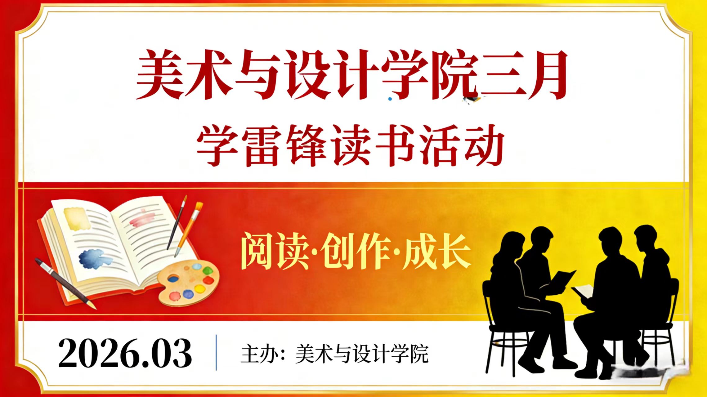 为深入开展学雷锋志愿服务活动,大力弘扬雷锋精神,营造浓厚的校园阅读氛围,美术与设计学院特推出“书香润班”学雷锋主题阅读系列活动,以诵读雷锋日记、分享青春感悟的形式,引导青年学子在书香中感悟榜样力量,在实践中传承雷锋精神。一、少年开篇三月春风处处暖雷锋精神代代传大家好我是美术与设计学院学生王鹏旭今天我们品读雷锋日记,感悟榜样力量让雷锋精神在青春岁月中闪光在行动实践中传承!二、学生诵读(雷锋日记节选)今天我读的是《雷锋日记》中的这一节选1961年10月20日“人的生命是有限的,可是...